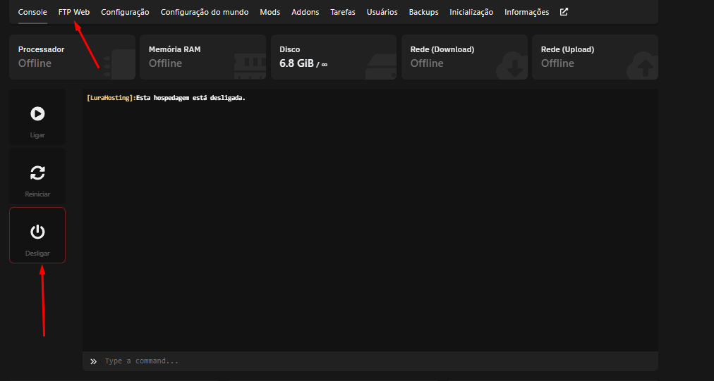 Para iniciar o tutorial, é importante que seu servidor esteja DESLIGADO, caso o tutorial seja feito com o servidor ligado, as configurações não serão salvas